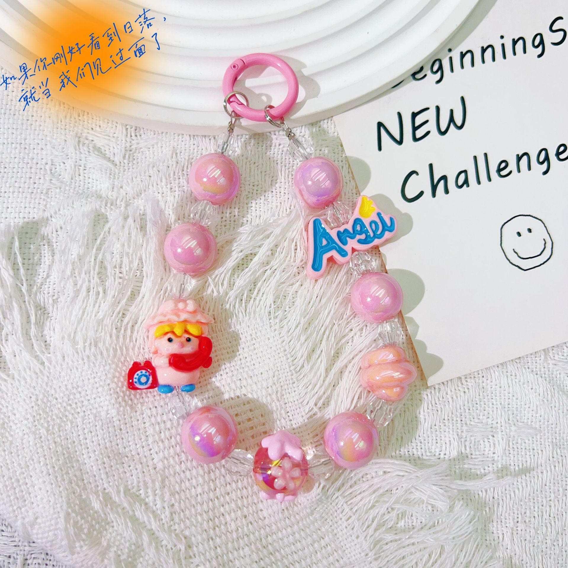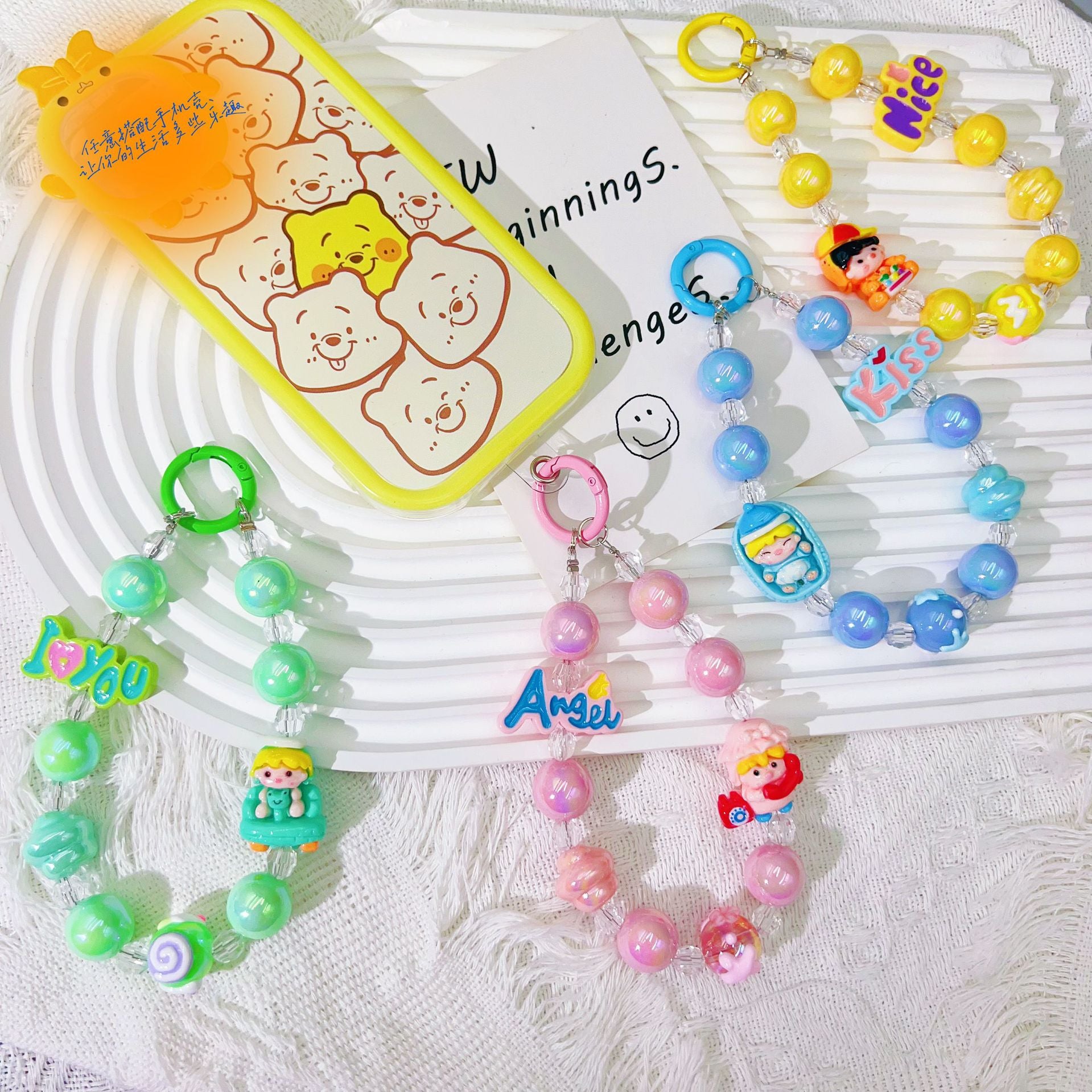 Creative letter cartoon bead string mobile phone chain hand-painted bead keychain pendant Douyin live broadcast same bag accessories