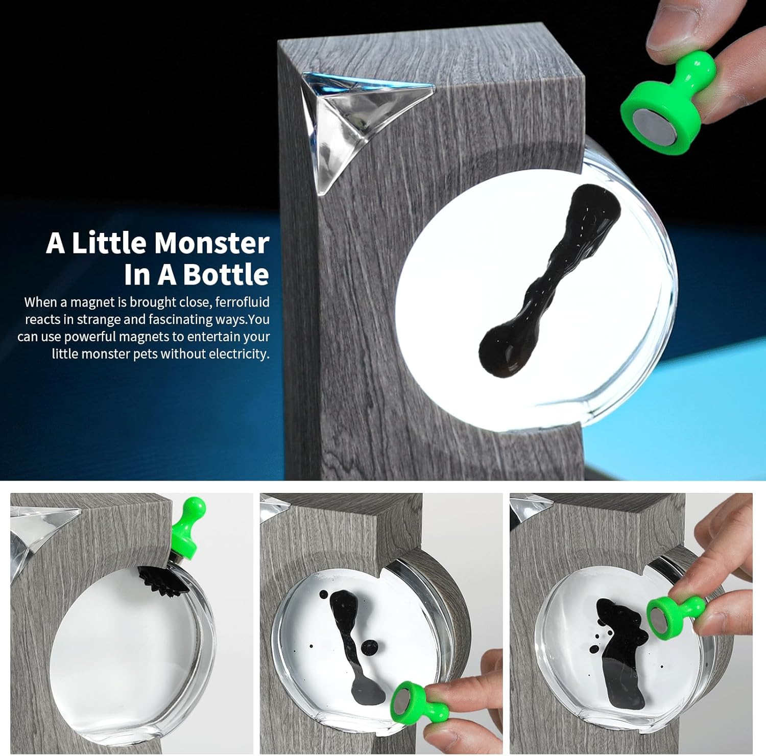 - 【Note】The original design of our product will retain bubbles of different sizes. and the bubbles are used to buffer the pressure inside the glass bottle and prevent the glass bottle from breaking. Keep the device upright so that the bubbles will rise to the top of the glass bottle and you can't see the bubbles. And please don't use the product at high temperature. otherwise it will easily cause the bottle loaded with ferrofluid to break.