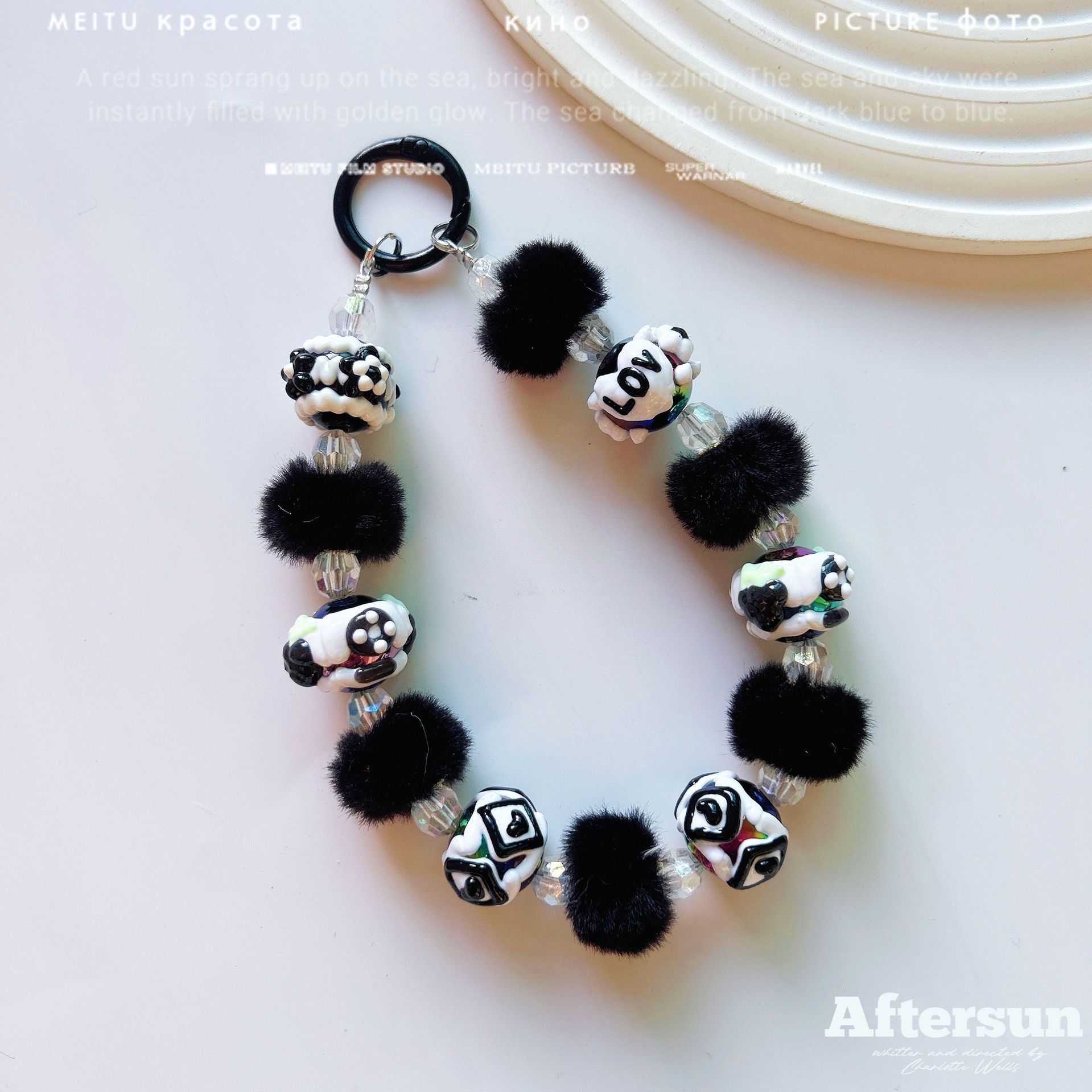 New autumn and winter hairball ring hand-painted beads, mobile phone chain beads, car keychain pendant, bag accessories, live broadcast of the same style