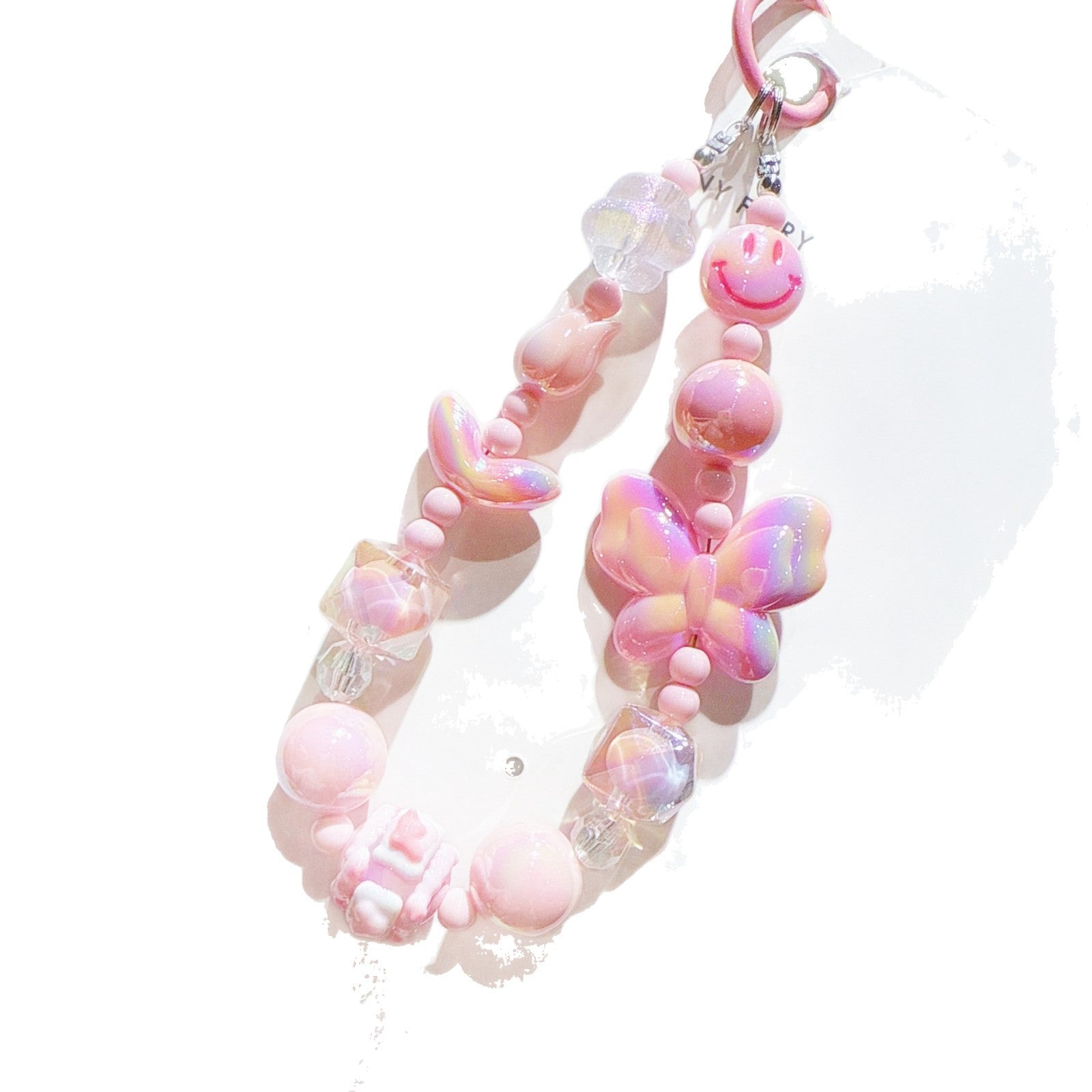 New UV Plated Butterfly Beaded Mobile Phone Chain Keychain Creative Smiley Pendant Car Key Bag Charm Gift