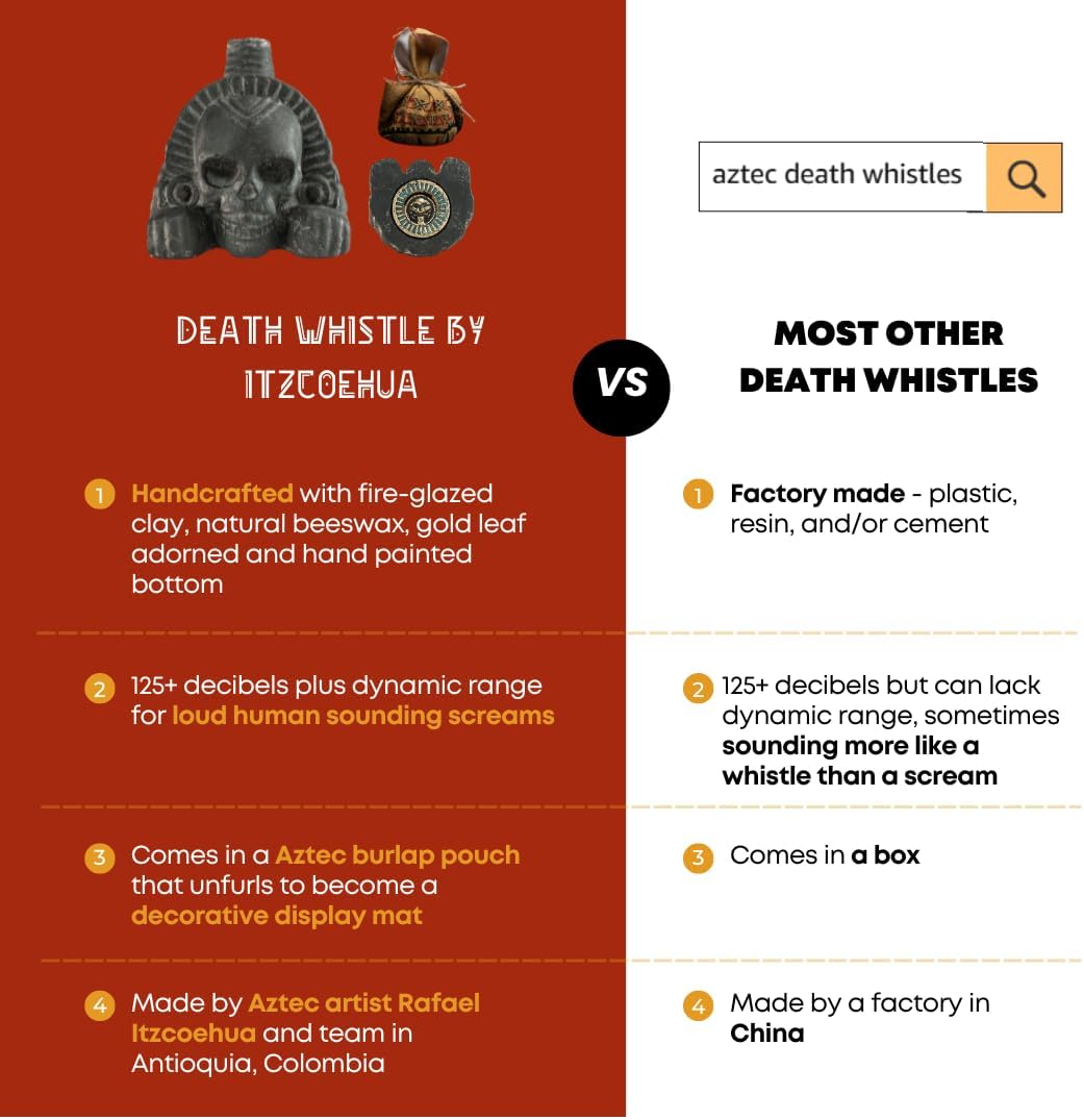 - HISTORICAL: Aztec Death Whistles have been used throughout history as super loud and terrifying instruments of religion and war. Embrace ancient Aztec civilization with this piece.