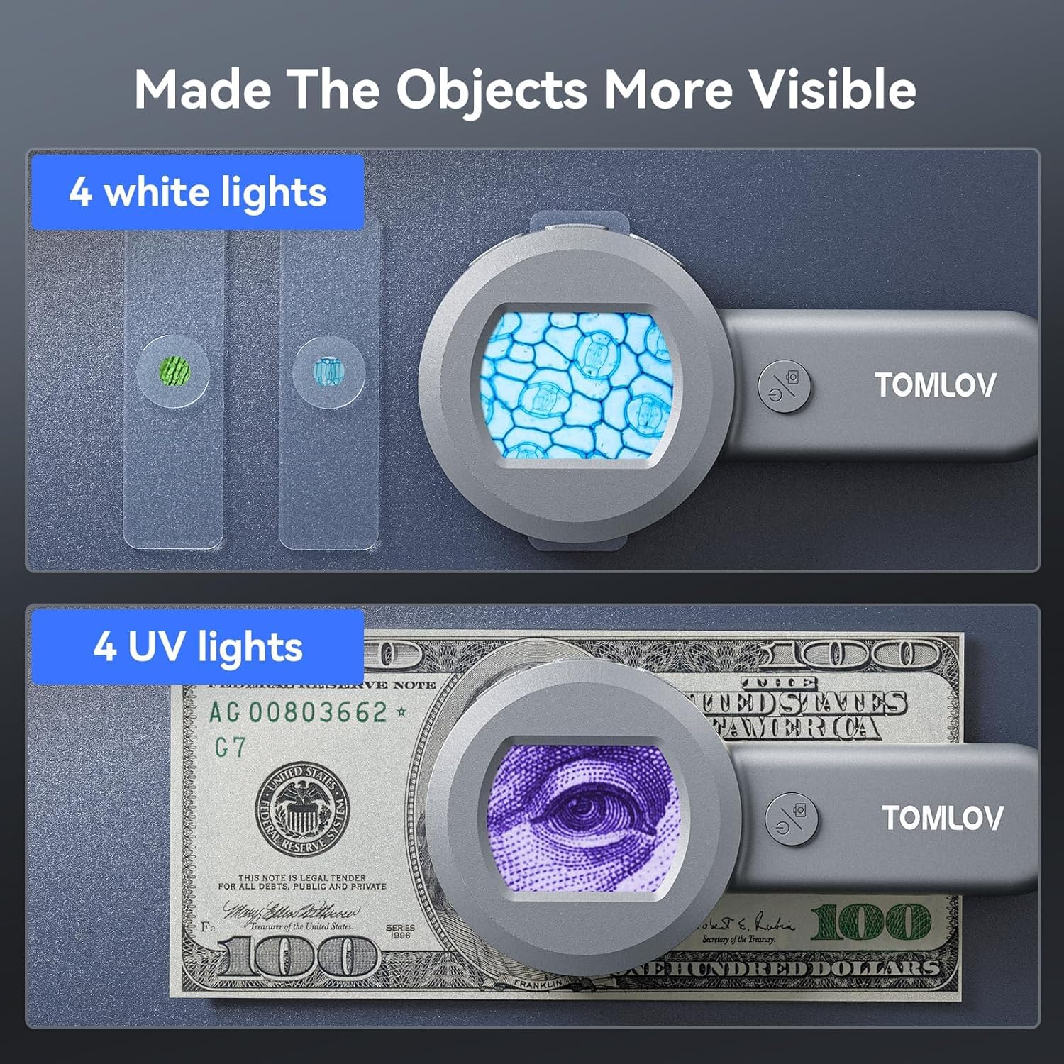 TOMLOV P10 Microscope for Adults Kids, Handheld Coin Magnifier with Light for Error Coins, Portable Trichome Magnifying Glass 100X, Collector Pocket Jewelers Loupe, Digital Microscope with 2" Screen