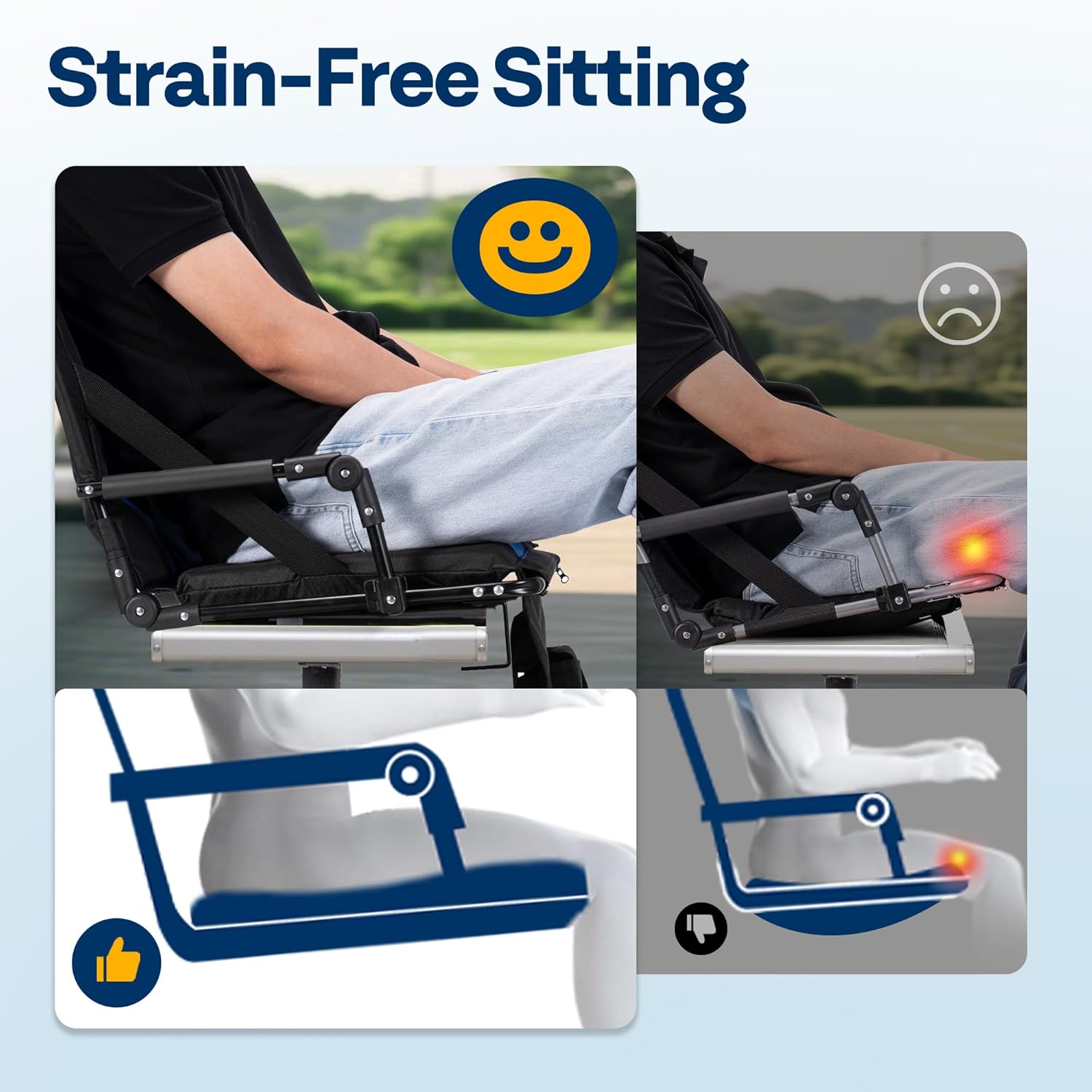 - RELAXING AND COMFORTABLE: This chair offers a superior seating experience with a thick, high-density cushion that provides excellent support; The enhanced base structure ensures sturdy support, allowing you to sit for hours without experiencing discomfort in your legs; The foldable armrests, padded leg rest, and headrest provide all-around softness; A 108° reclining angle and reinforced side straps offer excellent back support, reducing fatigue during extended use