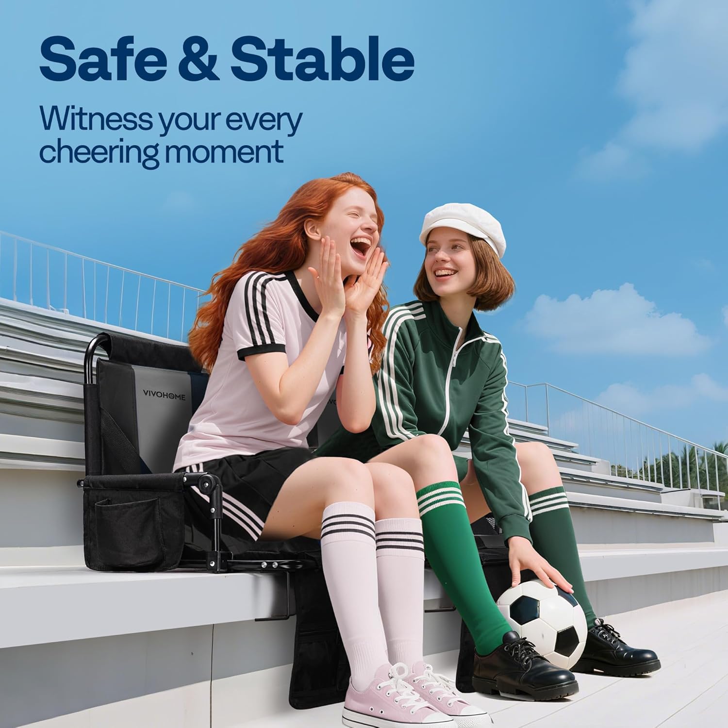 - EASY TO CARRY: The VIVOHOME stadium seat features a foldable design that reduces it to a compact footprint, allowing for effortless storage and convenient transport; You can choose between two carrying options: a shoulder strap or hand-held; The lightweight design and carrying straps ensure hassle-free transportation