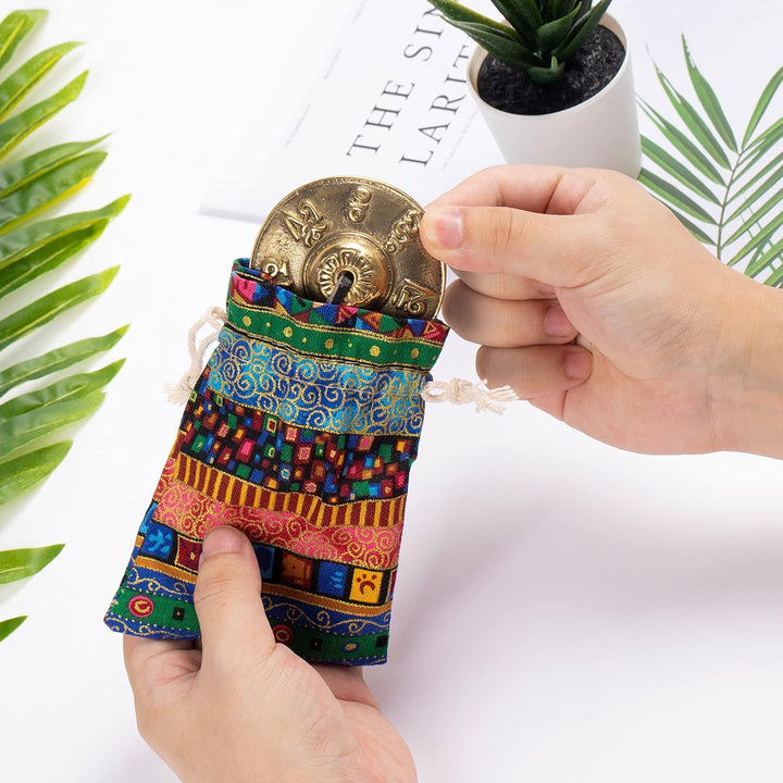Boao Tibetan Tingsha Cymbals Meditation Chime Bells with Tibetan Drawstring Cloth Bag. 6.3 cm Meditation Chime Bells. for Percussion Instrument(Om Mane Padme Hum Symbols Embossed)