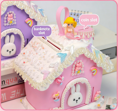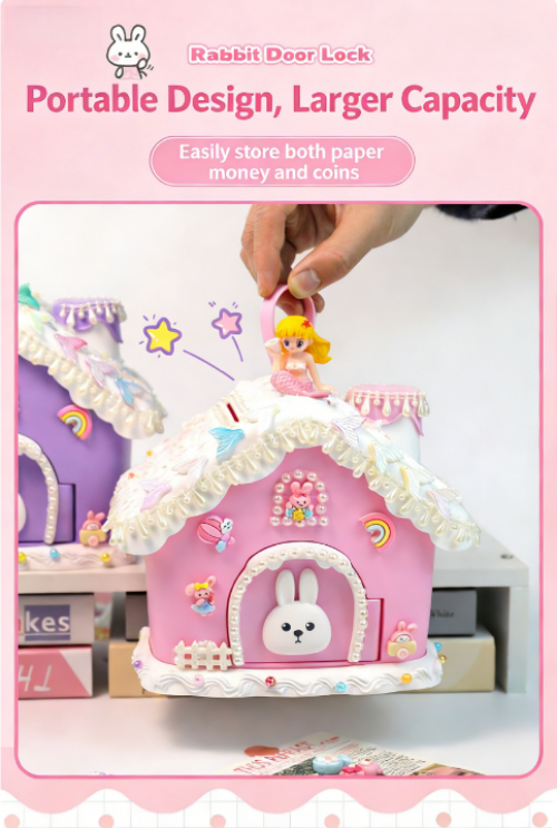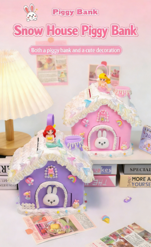 The little white rabbit igloo piggy bank, children's handmade DIY cream glue piggy bank can only come in and out, and the assembly toys can be assembled.