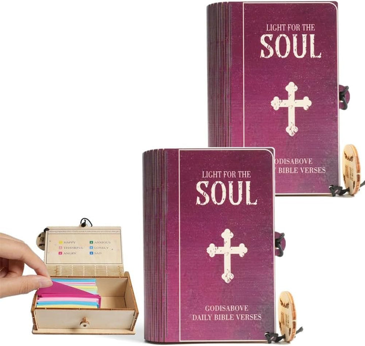 Place this beautiful Bible-shaped box in your personal prayer space or carry it with you for daily devotion. Draw one scripture card each day for meditation and spiritual reflection. The compact size makes it perfect for personal use at home, office, or during travel. Features include: daily inspiration, easy card selection, portable design, organized scripture storage, and meaningful spiritual practice